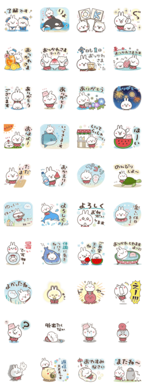 お人好しなうさぎと仲間の夏に毎日使える便利なスタンプです♪年齢を問わずずっと使えます。うさぎ/ウサギ/メンダコ/海