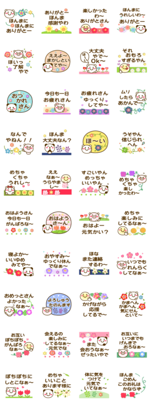 かわいい動物達12-3の【もらってうれしい気持ちたっぷり】長文やさしい関西弁(大阪弁)スタンプです♪大阪らしくリアクション大!シンプル!パンダ ねこ ぶた❤作:usakazu1