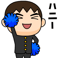 芋ジャージ姿のハニーが好きな男の子のスタンプです。中学生、学ラン、制服、カップル、アベック、パートナー、恋愛、片想い、恋人、夫婦。
