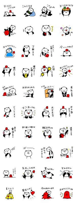 guuguufuuオリジナルスタンプ。人気のタコさんとパンダさんの敬語いっぱいスタンプです。使いやすい言葉を選んだよ。