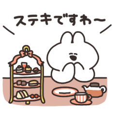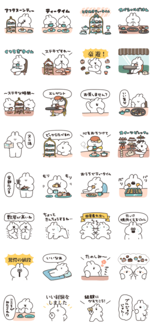 ティータイムをするうさぎのスタンプです。ナポリ より発売