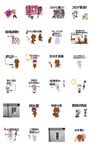 部長やコニー、ムーンが新型コロナウイルスの対策をします。ケンタウロス,サル痘も。 ※BROWN & FRIENDS をみんなでつくろう!キャンペーン参加スタンプですG-flash より発売