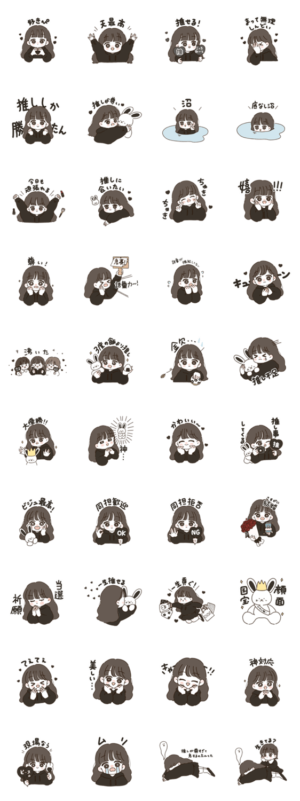 denのLINEスタンプ「推し活してる女の子(黒色)」登場!den より発売