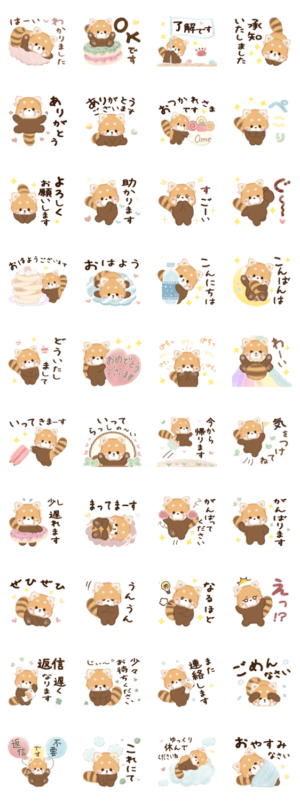 かわいいレッサーパンダのスタンプ。「即レス」に使えるものが多めで使いやすさの点でも素晴らしい。キャラも表情豊かで見ていて癒される。