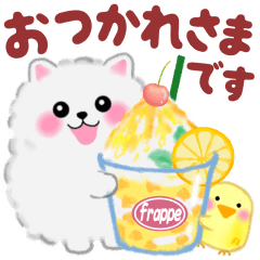 cute white Pomeranian summer 3 スタンプ画像一覧