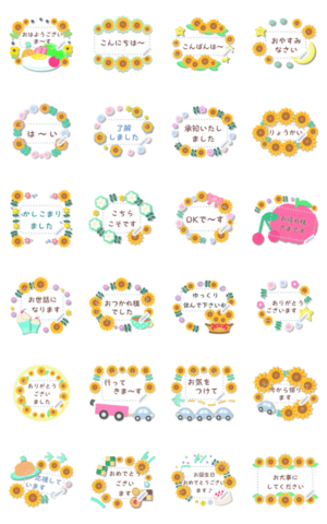 好きなメッセージを入力♥フラワー/ヒマワリ/ほんわか/かわいいお花畑スタンプ/承知いたしました/了解です/ありがとう/よろしくお願いします/お大事にして下さい/おしゃれ 現在この商品は一部のスマートフォン版LINE 10.3.0以上のトークルームでのみ使用できます。動作環境の最新情報はヘルプをご確認ください。mamama-chin より発売