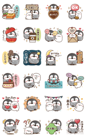 かわいいうえに丁寧に描きこまれているペンギンのスタンプ。にぎやかで楽しい感じが伝わってくるが、ある程度フォーマルな場面でも使えないこともない。