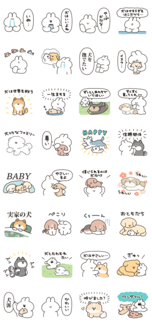 犬とうさぎのスタンプです。ナポリ より発売