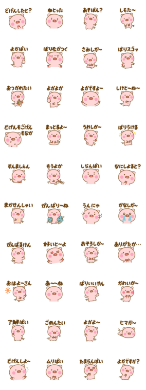 九州博多弁のぶたひな(福岡、熊本、長崎 スタンプ画像一覧