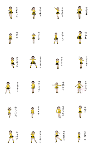 パッと見ダサいけど、昭和味があってかわいいスタンプ(芋ジャージ特別編6)今回は今から帰る、今終わったとか今が入っている言葉を作ってみました。今すぐどうぞ