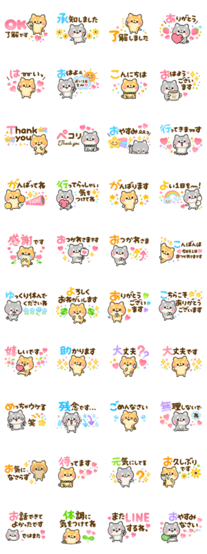 大人可愛い明るくカラフルなほのぼのスタンプです♪柴犬のまめちゃんたちのちょこんと可愛いスタンプです。よく使う言葉や敬語が満載です♪ぴよたぬき より発売