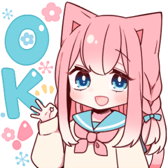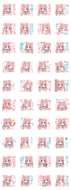 毎日使える挨拶やリアクションが入った桃色のねこさんのスタンプです佐治 より発売