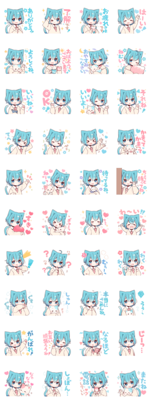 毎日使える挨拶やリアクションが入った空色のねこさんのスタンプです佐治 より発売