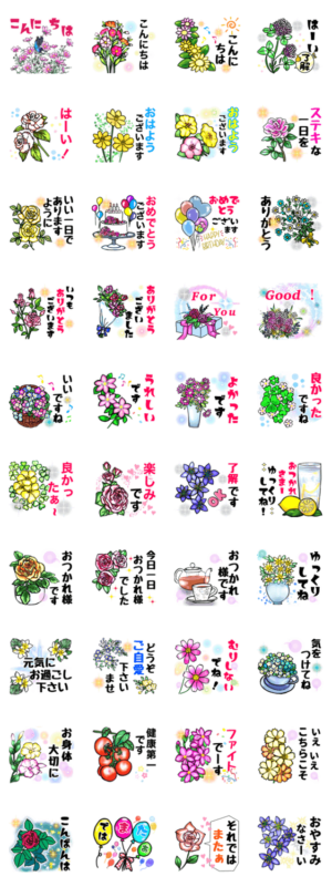 挨拶 気遣い 感謝の言葉等♪日常的に使いやすい言葉ばかりのお花のスタンプです♥️YURIKO より発売