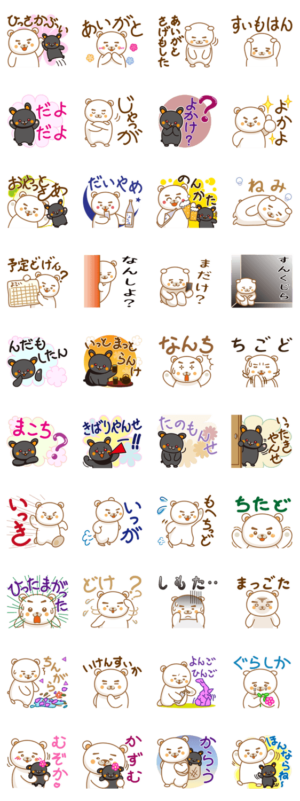 かわいいしろくまどんとくろうさぎの鹿児島弁スタンプです。毎日使える、よく使う日常会話中心。