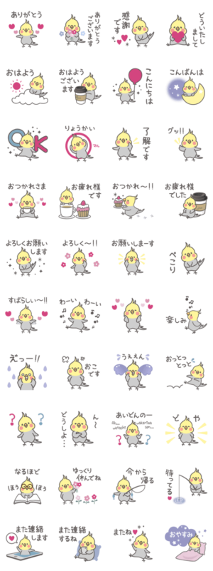 オカメインコ●´∀`●ノーマルスタンプ。毎日使えるスタンプ盛りだくさん。ノーマルタイプ・シナモン・シナモンパイド・パールパイド