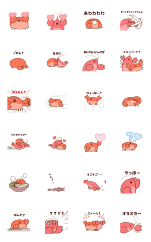 カニとザリガニはとっても仲良し!いつでもどこでも一緒にハッピー♪可愛らしくて送る相手を選びません。友達や家族、同僚へのリアクション、日常会話で便利に使えます♪guji より発売