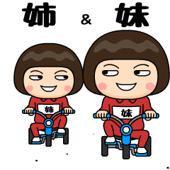 芋ジャージの【姉】と【妹】のペアスタンプ。カップル、アベック、パートナー、フィアンセ、夫婦、親友。※リクエストによって制作されたスタンプです。