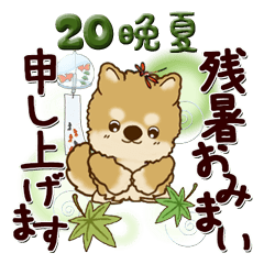 茶色い犬のちゃちゃ丸のなかなか終わりそうにない夏から初秋のスタンプです。(柴犬、〇〇犬・・・日本犬のつもりです...)藤花 より発売