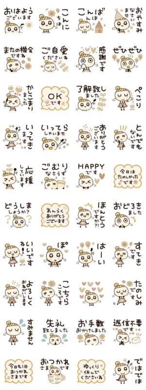 ほぺ美ちゃんシリーズ♪レトロな雰囲気の、やさしい北欧スタンプです。敬語なので幅広い方に送信することができます。小さな幸せ/感謝あさごぱん より発売