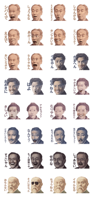 毎日便利に使えそうな関西弁を集めました。つっこみやジョークで会話を盛り上げることができます。表情豊かな偉人達が可愛いです。方言/しばくで/大阪/ネタ/お笑い/明るい