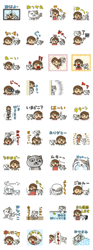 お母さんと飼いネコしじみの毎日使える日常スタンプです。tsumiki より発売
