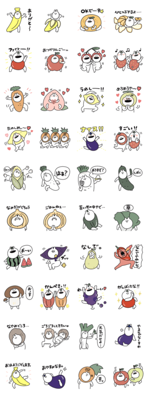 ゆるうさのシュールなベジフルワールド! スタンプ画像一覧