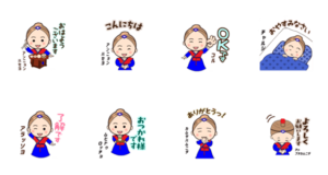 韓国時代ドラマに登場する女官のスタンプです。ハングル語も掲載しています。トシオカ より発売