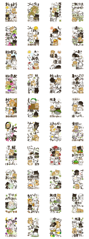 仲良しワンコたちの晩夏~初秋に使えるスタンプです。