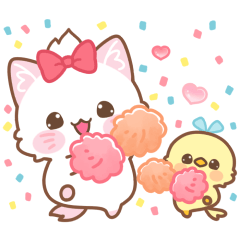 元気で可愛い子ねこ・プチモニカのスタンプ第4弾です。 お友達のカナリアちゃんと一緒!