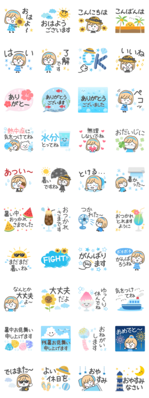 夏の毎日✳︎やさしいスタンプ✳︎女の子 スタンプ情報