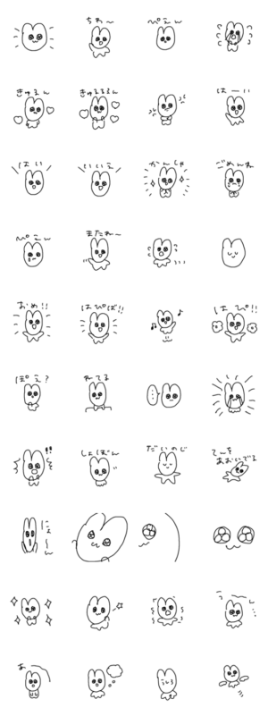 ぴえんなお目目のうさちゃんのゆる〜いスタンプです。ゆるい / シュール / うさぎ / ウサギ / 白黒 / モノクロ / シンプル / 落書き / 脱力おかえり より発売