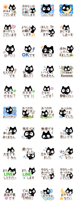 敬語にとても優しさを感じる素敵なスタンプです。クロネコちゃんも可愛らしいですね。