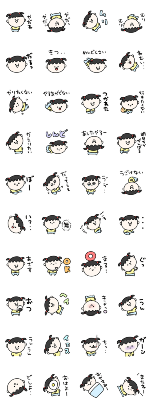 一生やる気が出ない。シュールな小さい丸顔な女の子のスタンプです。eribo より発売