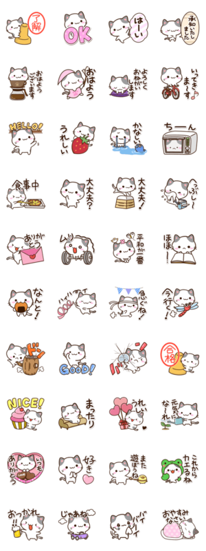 小さいブチ猫が、可愛く返事をします。よく使う言葉や、毎日使える文字を集めました。ぶちネコを飼っている方等、かわいいねこ好きな方にぜひ。【かたこ】かたこ より発売