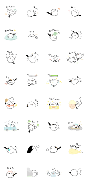 北海道の雪の妖精と呼ばれているシマエナガのスタンプ。 日常に使いやすい便利なセリフのラインナップです。rina より発売
