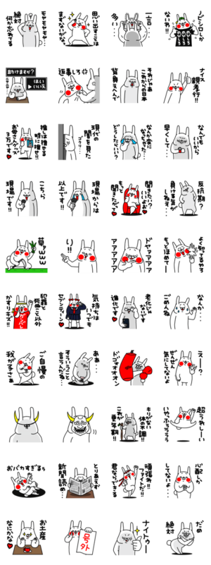 いろいろとクセが強いうさぎのスタンプ。全体的にギャグ・ネタ成分が強め。使い所は少し難しいかも。