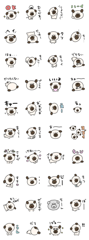 感情の波が激しいシュールなミニパグのスタンプです。eribo より発売