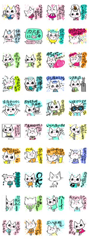 会社の同僚、訪問先との会話に便利。オフィスのワークシーンをなごやかで優しい雰囲気に。毎日使える/しろねこ/白猫/ネコ/大人女子/かわいい/会社/敬語/丁寧
