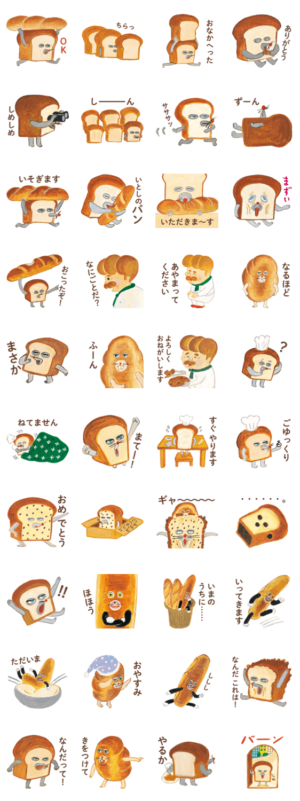 パン好きにはたまらないスタンプです。おのおののキャラクターが可愛い。