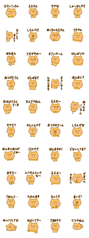 関西弁のゆるっくま(大阪、兵庫など スタンプ画像一覧