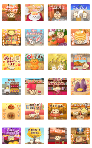 秋に使えるポップアップスタンプです!秋の紅葉、秋の美味しい食べ物が勢揃い!読書の秋/食欲の秋/スポーツの秋/芸術の秋すみれぐみ より発売