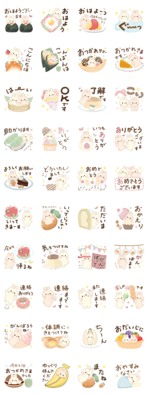 もふもふうさぎの毎日使いやすいスタンプです♡あいさつ・日常・食べ物・シンプル・おいしい・もふもふchatoran より発売