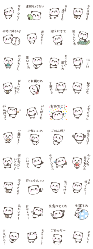 大阪弁、関西弁のパンダさん第ニ弾、家族連絡用スタンプです。ZOKAKO より発売