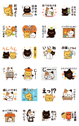 おじいちゃんやおばあちゃんも使いやすい♪誰にでも使えて便利なレトロ可愛いねこさん達の飛び出すスタンプです! (三毛猫・黒猫・トラねこ)
