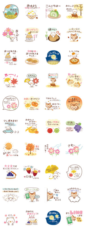 秋限定ですが、特に吹き出しのスタンプがおしゃれで、他ではあまり見たことないのがよい。