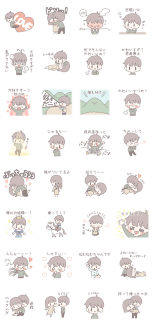 アツアツなカップルの、絵柄はとてもソフトでゆるいスタンプ。彼氏版と彼女版とがあるが、こちらは彼女版よりさらに扱いが難しいかも?