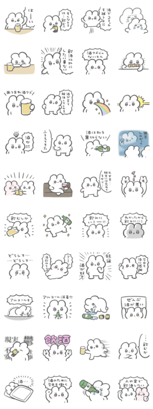 アルコールは人を素直にする!!!酒/飲み会/アル中/ぴえんなうさぎ/ビール/日本酒/チューハイ/ネタ系/食べ物スタンプ/量産型/地雷系/oroninet