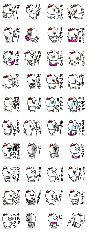 くまが大好きな女性のためのスタンプ。よくつかうことばのくまこのスタンプです。彼女や奥様や娘さんや女友達へのプレゼントにもオススメです♡