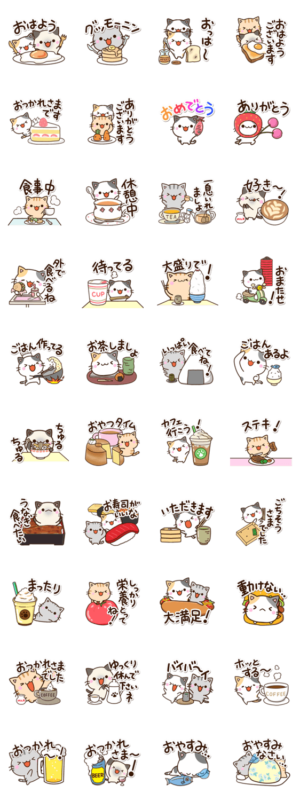 『ちびブチ』『ちびシャム』『ちびトラ』『ちびミケ』『ちびアメ』の絵文字もあります!『5匹のちび猫』の楽しく便利に使える、かわいい三毛ねこ等のスタンプ。【かたこ】かたこ より発売